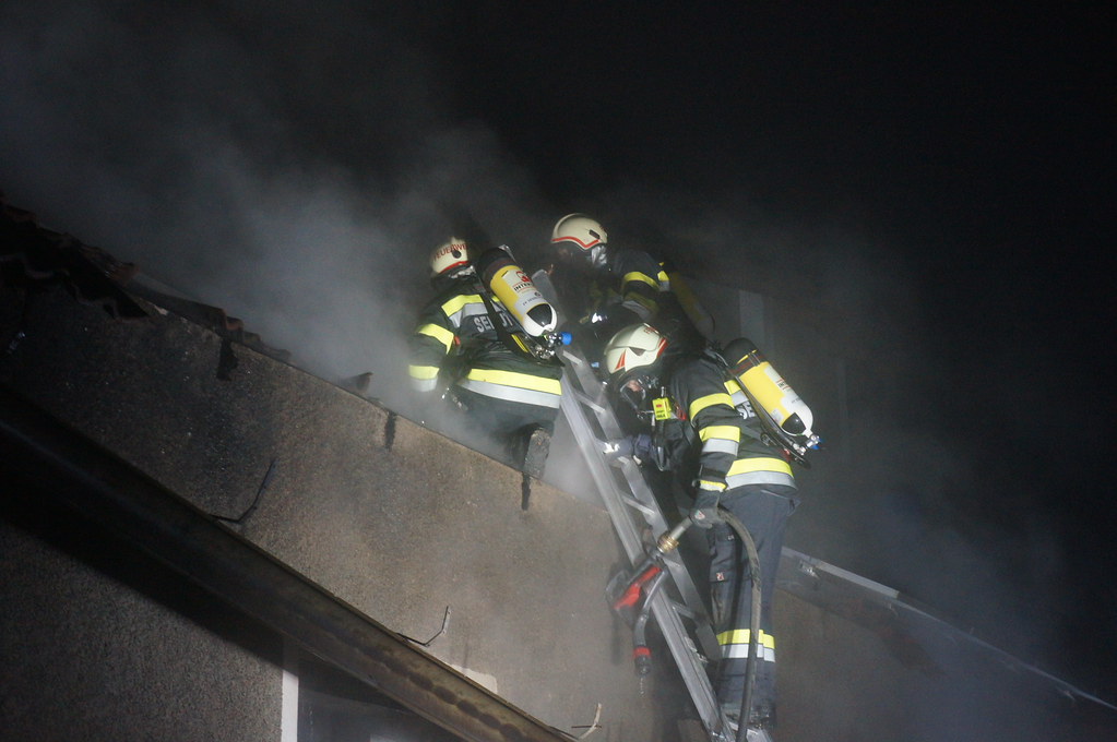 Als wir am Einsatzort eingetroffen waren, hatten die Besitzer die sichtbaren Flammen bereits gelöscht; der Brand hatte sich aber zu einem Zwischeneckenbrand weiterentwickelt, sodass ein Ausbreiten kurz bevorstand. Eile war geboten.