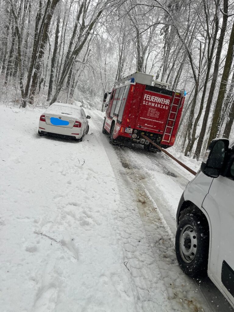 Die Wetterberichte haben es angekündigt. Die Einsatzfahrzeuge waren deshalb auch bereit, als am Freitag, dem 20. Februar 2026, um 4.50 Uhr der erste Sirenenalarm ertönte. Ein PKW war in Wiesein steckengeblieben. Als wir im Rüsthaus ankamen, erhielten wir die Information, dass der Lenker das Fahrzeug wieder flottmachen konnte.